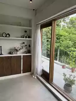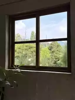 Surrounded by greenery, the view of the lush June trees through the large windows was absolutely stunning 🌳✨.