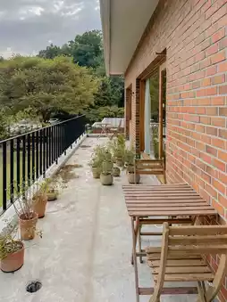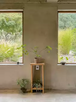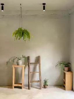 The interior is decorated with a planter design, creating a stylish atmosphere.