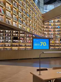 Bookground inside Starfield Market is a relaxing space reminiscent of a book café. Brightly lit, with neatly organized bookshelves and comfortable sofas, it's the perfect spot to pause during your shopping. Grab a cup of coffee, crack open a book, and you'll find yourself lost in time. With a wide selection of books for both children and adults, it's a popular destination for families. Even amidst the bustle of Starfield Market, this space exudes a quiet, relaxing atmosphere. A window seat offers a perfect spot to reflect and watch the action. When you need a quick break, Bookground is a healing space in the heart of the city, perfect for rejuvenating both body and mind.