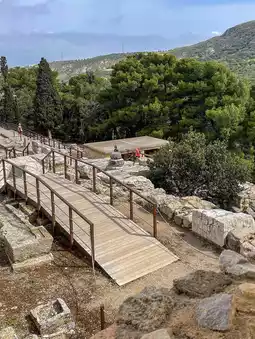 Walking through the site, visitors can explore the remnants of throne rooms, ceremonial spaces, and vibrant murals depicting myths and daily life. Informative signage and guided tours provide context, helping to understand the palace’s historical significance and its connection to Greek mythology, including the tale of the Minotaur. The surrounding landscape adds to the experience, offering scenic views of Heraklion and the Cretan countryside. Knossos is both educational and awe-inspiring, making it a must-visit for history enthusiasts and casual travelers alike.