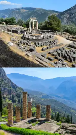 🔮 Delphi, once the center of Apollo's prophecies, sits atop a hill offering breathtaking views and is home to fascinating ancient temples.