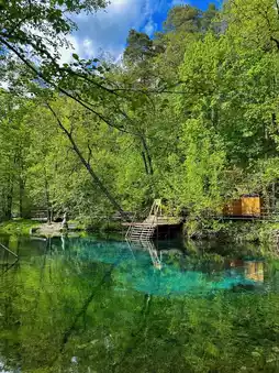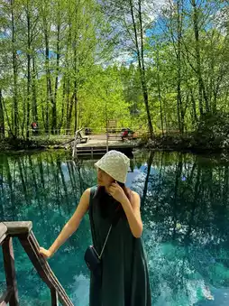 The Blue Lake is small, and the water is ice-cold, perfect for wearing slippers and dipping your feet. It is surrounded by dense forests, with very fresh air, ideal for hiking and picnics.