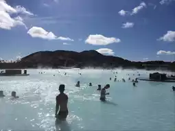 The most iconic place to visit at the Blue Lagoon is the main geothermal pool, where the warm, milky-blue water meets Iceland’s dramatic lava landscape. This stunning lagoon is surrounded by black volcanic rock and filled with mineral-rich water from deep underground, keeping a soothing temperature of 37–39°C all year. As you step into the steaming water, you’re surrounded by mist, creating a peaceful, dreamlike feeling. One highlight is the Silica Bar, where visitors can apply the famous white silica mud mask said to refresh and soften the skin. Nearby, the In-Water Bar lets you enjoy a cool drink while soaking in the warm water. For those seeking more luxury, the Retreat Spa offers private pools and lava cave saunas with breathtaking views. Whether you visit during the day under a bright sky or at night when the northern lights shimmer above, the Blue Lagoon’s iconic pool offers pure Icelandic magic—a perfect blend of nature, relaxation, and beauty.