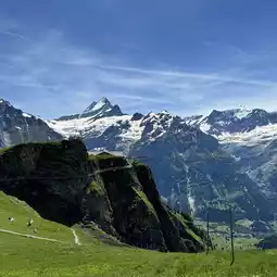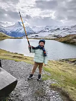 If you visit Grindelwald First and have some time, I recommend hiking to Bachsee Lake. The lake has a great atmosphere, surrounded by mountain views, which is very enjoyable. It’s a good idea to bring food for a picnic, but don't forget to take your trash back with you. The journey is not difficult; after taking the cable car to the top, there are signs directing you to walk for about an hour. The path is easy and well-maintained, suitable for children. Walking as a family is a lot of fun, and kids can experience the beautiful nature of Switzerland. It’s highly recommended for families with young children. When you reach the lake, there are benches to sit and take beautiful photos. You can walk around the lake and find many great photo spots. Spend some time relaxing and having a picnic before heading back.