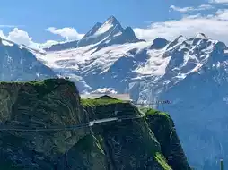 The First Cliff Walk in Grindelwald, Switzerland, is a thrilling experience offering stunning views of the Swiss Alps. This adventure involves a metal walkway clinging to the side of the mountain, culminating in a viewing platform that extends out over the valley. It's a popular attraction for both nature lovers and photographers, providing a unique perspective of the dramatic alpine landscape.