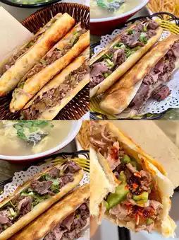 • Donkey meat sandwich: Freshly baked sandwich with a crispy outside and soft inside, donkey meat mixed with green peppers crumbled with every bite. My bestie said while eating, “This tastes more authentic than Beijing’s”;
