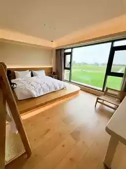🏠 All rooms feature two-level loft designs with huge floor-to-ceiling windows framing entire rice fields🌾—so relaxing to gaze at!