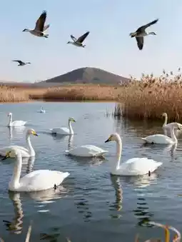 Highlights: Endless reed marshes, take a boat tour (100 RMB/person) through the reeds to see flocks of wild ducks and egrets. Elders can enjoy the swaying reeds from the boat deck, kids can use binoculars to spot bird nests. At sunset, the reeds glow like a golden ocean.