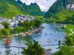 Guilin (桂林), located in Guangxi Province, is world-famous for its stunning mountain views — specifically the karst mountains that rise like jagged green spires from the land and river. These surreal, postcard-perfect landscapes are among the most iconic in China