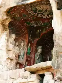 It is the earliest cave in Qianfoya, with a huge Buddha statue and two Bodhisattva statues.