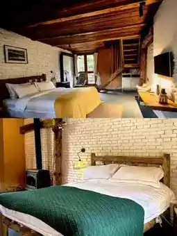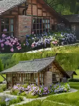 🌲 The rooms are pure wood 🪵, and the walls are adobe, which perfectly balances comfort and convenience. The rooms are unique, the air is fresh, and at 🌙 night, you can enjoy a barbecue 🍖 in the front yard room, with a view of the mountains and many beautiful hydrangeas 💐 from the window.