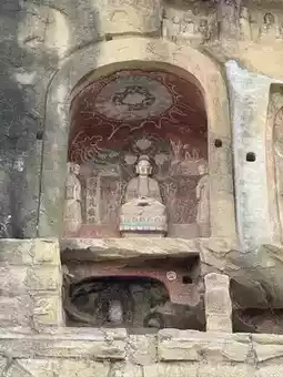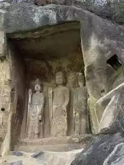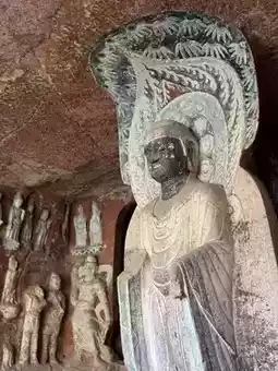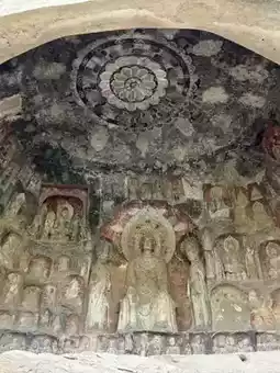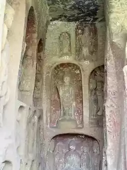 Notable caves within the complex include Dayun Cave, which houses a standing statue of Maitreya Buddha, and Lotus Cave, named for its central lotus carving.