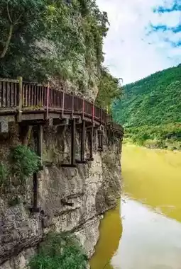 Morning: Head to Mingyue Gorge Ancient Plank Road. Mingyue Gorge is a canyon formed by the Jialing River breaking through the mountains, known as the "throat within the throat of the Shu Road." Walking on the ancient plank road here, you can personally experience the dangers of the Shu Road and the grandeur of the Jialing River. This area combines six routes—plank road, post road, cable road, waterway, highway, and railway—in one gorge, known as the "Chinese Road Transportation Museum," offering a unique experience. Recommended visit time is 2-3 hours.