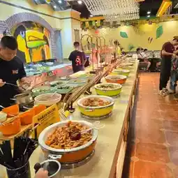 The restaurant offers a buffet with Brazilian style meats that are going to be cut on your table.