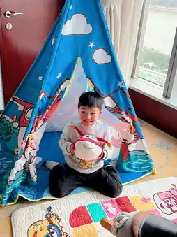 There’s also a small tent and a rocking horse in the room.