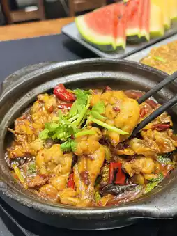 The baby cabbage paired with dried shrimps tastes good, and the bullfrog meat is firm and delicious.