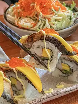 The eel is grilled just right, with the aroma of fat and the sweetness of mango. It tastes very good with multiple flavors.