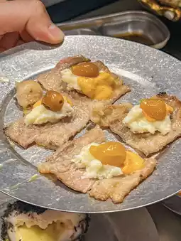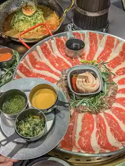 The platter full of meat is truly impressive, with beef brisket, red wine beef ribs, and pork jowl... every bite is filled with happiness! Paired with their special sauces, sweet and sour sauce, spicy cheese sauce, and lantern pepper sauce, every bite is delicious.