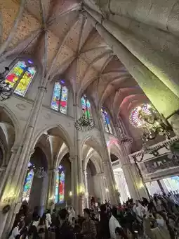 The Catholic Sacred Heart Cathedral⛪️ located in Yuexiu District, Guangzhou was completed in 1888. Since the walls and pillars of the entire church are built of granite, it is also called the Stone Chamber Church. Due to its historical value, it has become a national key cultural relic protection unit. The architecture of the church belongs to the Gothic Revival style of the 19th century. The interior of the church has a rib-shaped vaulted dome, and on both sides are equipped with multiple pointed pre-shaped windows inlaid with colored glass. The light from the outside shows the design based on religious stories, which is very worth appreciating. The towering ceiling gives the church a solemn style. This church is the only Gothic church built of granite in Southeast Asia and one of the four stone-structured Gothic churches in the world. The square at the main entrance of the church is an ideal location for taking photos and punching in 📷. Whether you have religious beliefs or not🙏🏻, the history and architectural art of this church are worth visiting.