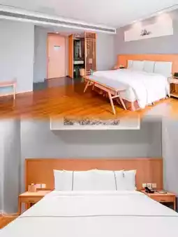 🏨 The hotel has a simple style, the rooms are clean and tidy, and the elevator requires a room card. This time I stayed in a business king room on the 14th floor. The room was large and very clean, with complete disposable supplies. The shower, toilet, and sink are separate, the shower has high water pressure and a good water temperature, and two bottles of water are provided for free.