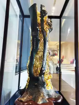 The museum houses a collection of products representing Lingnan intangible culture in Guangdong Province, including lion dance, Cantonese opera, wood carving, martial arts, Cantonese embroidery, dragon boat, and Yingge dance, all of which can be appreciated up close. In the "Bay Area Unity" exhibition area, a large ivory carving made of buffalo bone and using the technique of tooth carving, presents the representative natural and cultural landscapes of 11 cities in the Guangdong-Hong Kong-Macao Greater Bay Area, including the Canton Tower in Guangzhou, the Ruins of St. Paul's in Macau, and the Opium War Museum in Dongguan. The exquisite ivory carving is a masterpiece that is sure to impress!