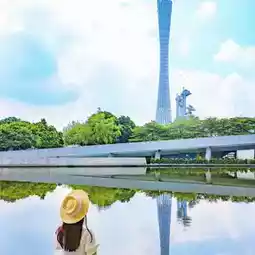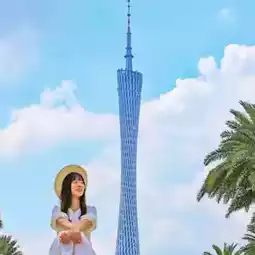 You can capture the clean grassy slope with the Guangzhou Tower. The weather in Guangzhou is fantastic, and with the blue sky and white clouds ☁️, it gives a very Japanese vibe!