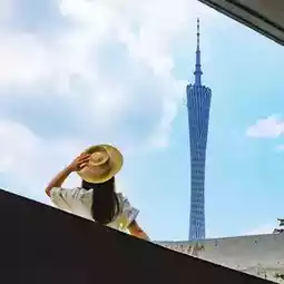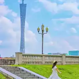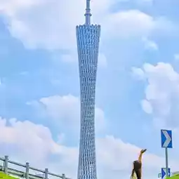 We searched for this spot for a long time and asked many people before finding it. Navigate to 'Guangzhou Minzhu Building'. The stairs, street lamps, railings, and the Guangzhou Tower here create a comic-like effect in photos.