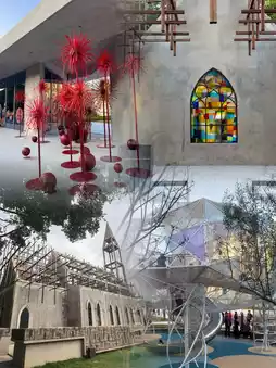 ⛪ Old Church: Sunlight filters through the mottled walls, creating a sacred and healing interplay of light and shadow. The New Year decorations on the lawn enhance the atmosphere, making every photo taken here a masterpiece.