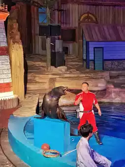 The sea lions' cleverness and talent are even more spectacular against the backdrop of the night. The interaction with the dad drew applause from the audience. 👏👏There was also a clown uncle playing with the kids, and even I was jealous of the beautiful balloons in his hands.