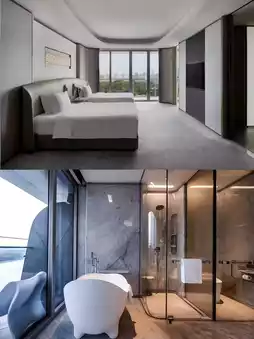 ๐ถGuangzhou Xianglan Guanzhou Hotel is a place that everyone will love at first sight. Located at the end of a quiet island in a bustling city, it is surrounded by water on three sides and is very secluded. The building looks like a cruise ship ๐ณ about to set sail, and its natural advantages ensure that all rooms have a wide view of the river. When you walk into the lobby, you will see a tall and transparent atrium ๐, with a huge interior space reaching the dome, and the guest rooms are distributed on each floor along the outer oval ring.