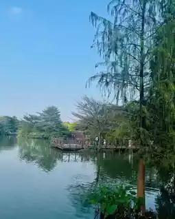 Lake Heart Island: 360-degree lake view, wooden boardwalk, reed marshes, and bald cypress forests. On sunny days, the lake reflects the blue sky, picturesque! After 4pm, the light is soft, standing on the waterside stone slabs to take photos of your back or silhouette is amazing👍.