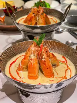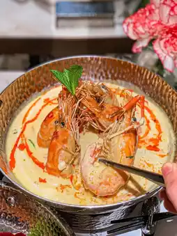 The giant river prawns are plump and juicy, and the white curry enhances the sweetness of the prawn meat to perfection. Tender and springy, the prawn heads are filled with flavorful roe. The white curry and coconut milk are incredibly fragrant, perfect for mixing with rice. It's a truly satisfying dish.