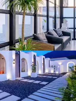🌼The Mediterranean cream-style courtyard makes you feel like you’ve traveled to Santorini in a second. The garden is full of flowers and the photos are amazing📸. Any photo you take will be a spring blockbuster!