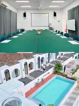 The homestay has a total of 14 rooms😎, each room is equipped with a projector and a terrace. Lie on the soft big bed, watch your favorite movie, and enjoy your own comfort👨👩👧👦