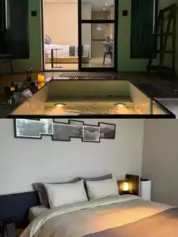 This is a two-bedroom rental, perfect for bringing kids! Babies can enjoy private hot springs, and the balcony overlooks lush greenery. The hot spring children's play area is also a highlight, where kids can have endless fun.