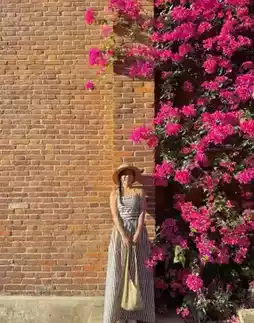 - Photo outfits: Wear light-colored dresses, such as white or light blue, to create a fresh and gentle feeling against the vibrant bougainvillea; you can also choose a retro red dress for a more eye-catching look.