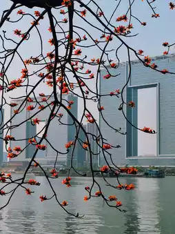 🍀The breeze of early spring blows gently, and the ancient kapok trees in Xilin Courtyard, located by the river, bloom again as scheduled, as bright red as fire, as if this unique space transformed from an old shipyard is covered with a layer of warm glow. The mottled brick walls and the splendor of the kapok trees complement each other, telling the traces of time.