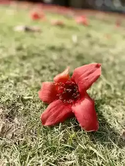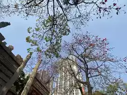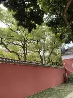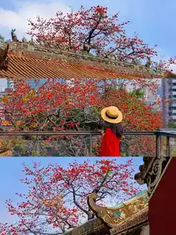 Following the quiet path, I searched for the best flower-viewing spots. Soon I arrived at one of the site's signature views - where ancient walls meet cotton trees. The cotton trees were in full bloom, their flowers blazing like flames with passionate vitality. The fiery red blossoms created a perfect harmony with the classical architecture, painting an extraordinarily beautiful picture. Occasionally, flowers would drift down in the breeze like nature's red rain, adding a touch of poetry and romance.