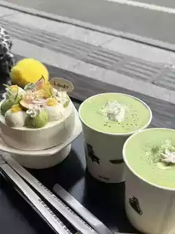 This cafe offers a set for 1 person, including 1 cake and 1 matcha coconut latte! 🍵🥥 The matcha coconut latte combines the rich flavor of rich coconut with the harmonious aroma of matcha, creating a rich and deep flavor. The bittersweet matcha and sweet coconut combine to create a smooth, mouth-watering experience!