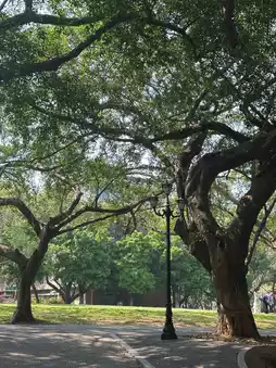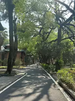 The campus is lush with greenery, towering banyan trees, and lawns like carpets. Historical buildings such as Huai Shi Hall and Xing Pavilion bear witness to the school's significant changes over time.