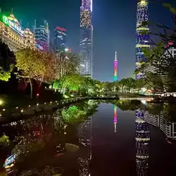 Walk to the observation deck at the back, there is a large pool in the center, where you can take pictures of the reflection of the Guangzhou Tower! Beyond the film!