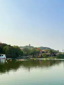 The park boasts a harmonious blend of shimmering lakes and lush mountains. The crystal-clear waters of Luhu Lake sparkle under the sunlight, while the weeping willows along the shore sway gently in the breeze, creating a scene reminiscent of a poet's tender brushstrokes.