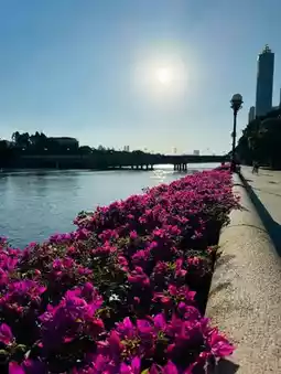 Walking along the Pearl River in Guangzhou during spring is peaceful and beautiful. The weather is perfect, with a soft breeze carrying the sweet smell of flowers. The Canton Tower stands tall in the distance, shining against the blue sky. Bright flowers line the path, and boats glide on the calm water. Street musicians add to the atmosphere. The mix of nature and city life feels perfect, creating a calm, joyful moment I’ll always remember.
