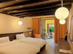 Staying in the village's stacked courtyard, the view of the Japanese room, there is a super atmospheric courtyard, the garden layout is too good to take pictures - the outdoor tea room with a fire, everywhere reveals the atmosphere of life.