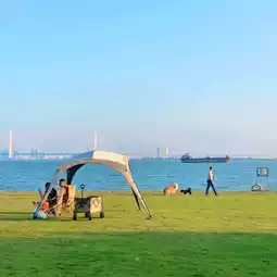 The second stop is the Pearl Bay Bridge. Here is the little-known "Grassland Glass Sea", and with the gorgeous sunset, the scenery is as beautiful as a painting. Sitting on the embankment, watching the shadow of the bridge swaying with the waves, the azure blue sea is particularly charming on a sunny day. Exit Exit A of Nanheng Station on Line 4 and ride a bicycle to arrive in about 10 minutes.