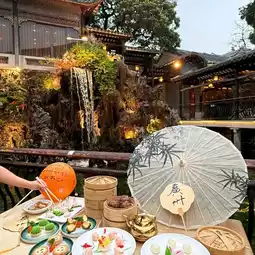 When you step into Panxi Restaurant, you instantly feel like you are walking into a classical garden. The pavilions, waterside terraces, carved railings, and painted plaster sculptures are all exquisitely designed. Sitting by the window, you can enjoy the rippling blue waves of Liwan Lake and the green willows hanging down the banks. It is very comfortable to dine while admiring the scenery! Every corner is great to take pictures, and every frame you take is a retro movie📸