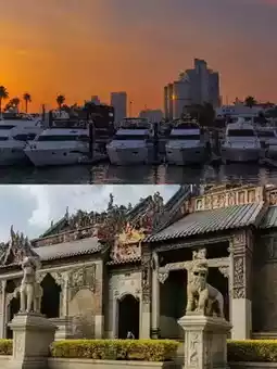 The bridge reflection in water is stunning—wear traditional Hanfu for amazing photos! The red walls of the Cantonese Opera Museum are also very photogenic.