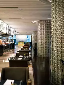 18:00 Run to the lobby on time to witness the magic moment - suddenly lit up by Swarovski crystal-woven kapok chandeliers sprinkling stars on the Fisherman's Song mural. The carp swims in the light and shadow. It is recommended to stand on the spiral staircase in a silk dress and use a wide-angle upward shot to create a fashionable blockbuster.