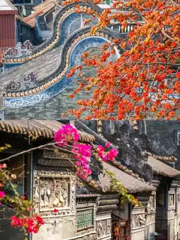 Spring in Shawan Ancient Town really brings the charm! Bright red kapok flowers hang all over the branches, setting off the Liugeng Hall, Wenfeng Pagoda, wok-ear walls, blue brick walls, and oyster shell walls of Shawan Ancient Town... all in the same frame, creating a Lingnan spring atmosphere! There are even more surprises around the corners of the old alleys—fiery red bougainvillea stretches out from the walls. Take a picture from the upstairs vantage point to maximize the atmosphere! You can take a picture with the bougainvillea, ancient alleys, and wok-ear walls in the same frame!