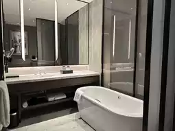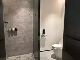 The bathroom is divided into wet and dry areas, equipped with a separate shower and bathtub. Plus, there’s hand cream provided next to the sink, which is such a thoughtful touch. 🩷